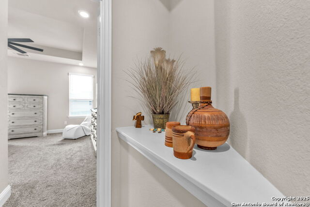 Nestled at the end of a peaceful cul-de-sac on an oversized lot, this impressive two-story residence immediately makes a statement with striking curb appeal and a modern, upscale exterior finish. As you arrive, the well-maintained landscaping and attractive exterior set the tone for the quality and care evident throughout. Step inside to a grand entry defined by a soaring 19-foot ceiling that opens into generous living spaces flooded with natural light - a dramatic welcome that showcases the home's volume and thoughtful design. The open layout flows effortlessly from the foyer into expansive living and dining areas, ideal for everyday living or entertaining friends and family. A feature staircase with elegant wood and wrought-iron rails adds a custom, refined touch as it leads upstairs, embodying the craftsmanship and style that define this home. Upstairs, discover five spacious bedrooms, configured to provide flexibility for family living, guests, or a dedicated home office. The roomy bedrooms, combined with the home's ample square footage, offer abundant space for comfort and privacy. Thoughtful upgrades and quality finishes throughout reflect attention to detail and modern convenience, giving the home both timeless appeal and move-in readiness. Outside, the oversized lot delivers rare cul-de-sac privacy and outdoor possibilities - whether you envision a lush garden, a play area, or a tranquil backyard retreat. The generous lot size ensures plenty of room to grow and personalize the outdoor space to fit your lifestyle. Located in a highly desirable neighborhood within the Schertz area, this home blends upscale design, layout versatility, and pride of ownership - offering a compelling opportunity for buyers seeking comfort, style, and room to expand in one of the area's most sought-after communities.